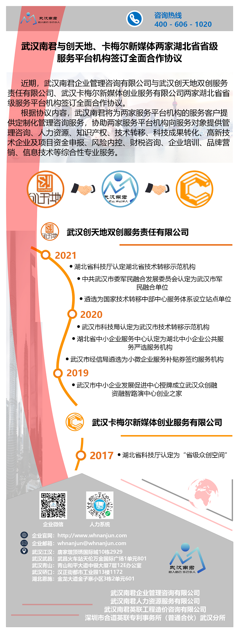 祝贺!武汉南君与创天地、卡梅尔新媒体两家湖北省省级服务平台机构签订全面合作协议